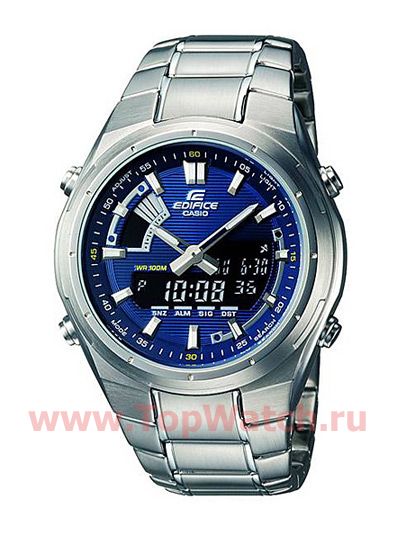 имеет корпус круглой формы выполненный из нержавеющей стали, с циферблатом синего / голубого цвета