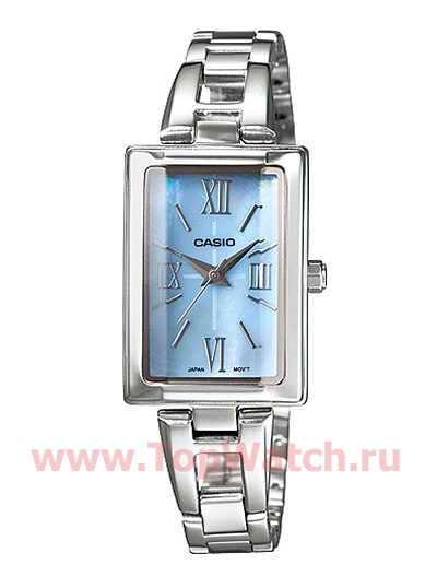 имеет корпус прямоугольной формы выполненный из нержавеющей стали, с циферблатом синего / голубого цвета